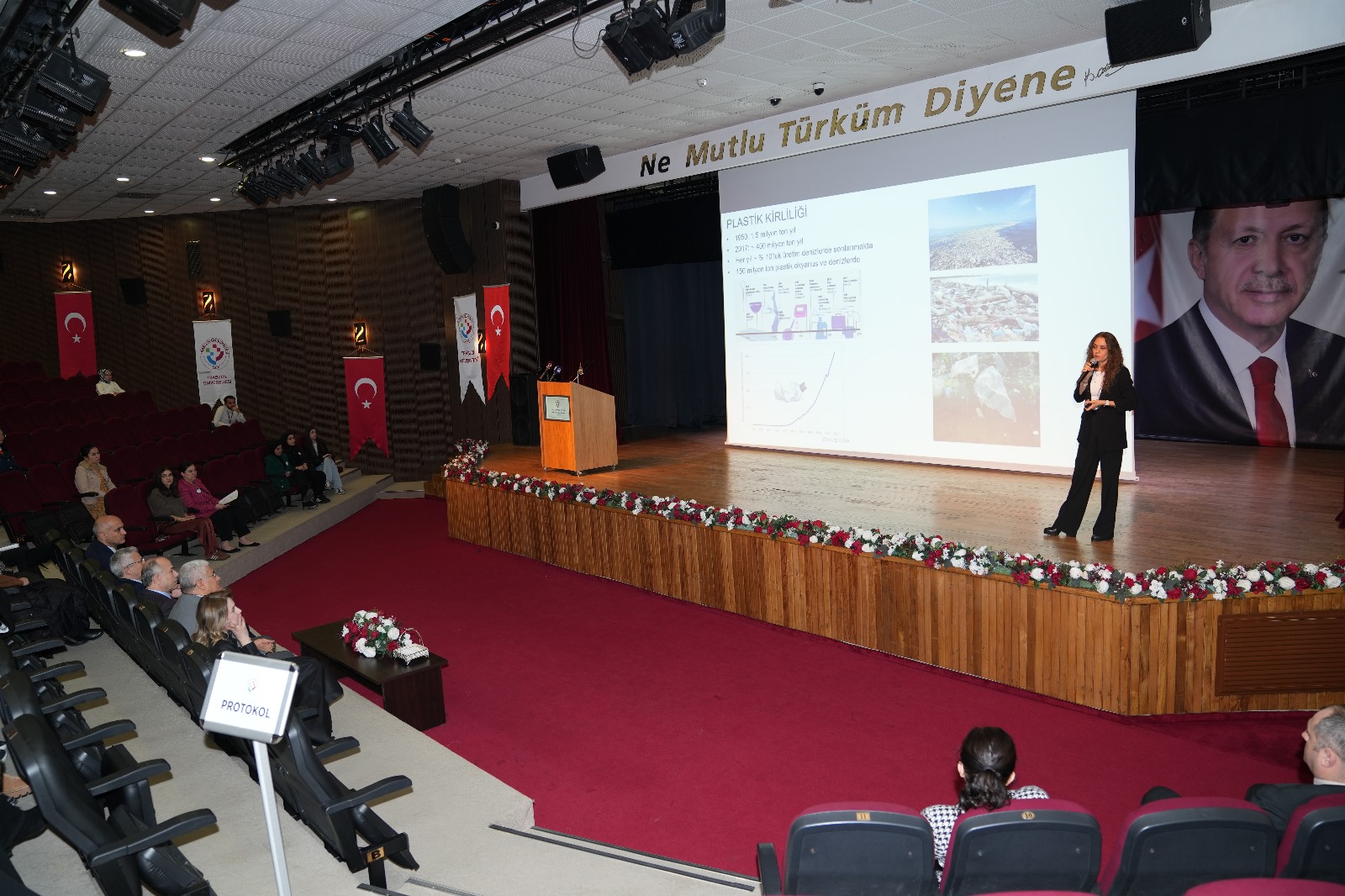 “Plastik poşet 1960’lı yıllarda ilk olarak keşfedildiğinde ormanları koruma amacı taşıyordu ama gelecekte çok büyük bir felakete yol açabileceği öngörülemedi. Bugün üretilen plastiğin yüzde 50’sinden fazlası tek kullanımlık. Geri dönüşüm maalesef yüzde 8’ler civarında. Kullandığınız her eşyada, dokunduğunuz her yerde ağırlığı 400 milyon tona ulaşan plastikler var. Her türlü nihai kirleticinin ulaştığı ortam olduğu için denizler kritik öneme sahip. Plastik atıklar genel iklim ve denizel canlılar için büyük tehlike oluşturuyor. Balıkların midesinde en çok sentetik fiberlere rastlıyoruz. Özellikle alışveriş yaparken tekrar düşünelim; nitekim giydiklerimiz ve tükettiklerimizle doğrudan bir plastik kapanı içerisindeyiz. Yaşarken de sürekli mikroplastik üretiyoruz. Antarktika’daki buzullar içerisinde mikroplastiklere rastladık. Bunlar erimeyi de hızlandırıyor. Plastiklerle mücadelenin yolu onu reddetmektir. Reddedemiyorsanız azaltın, azaltamıyorsanız ger dönüştürün” önerilerinde bulundu.